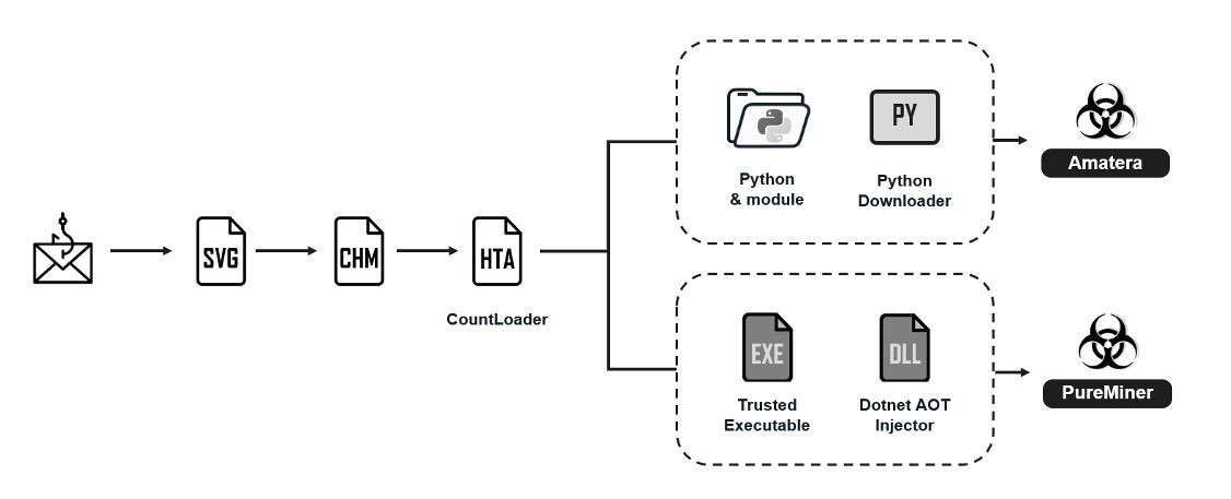 CountLoader, which has been analyzed recently by Silent Push, is known for dropping payloads like Cobalt Strike and PureHVNC RAT. But in this case, it's being used to spread Amatera Stealer (a variant of ACRStealer) and PureMiner, which is a sneaky cryptocurrency miner written in .NET.